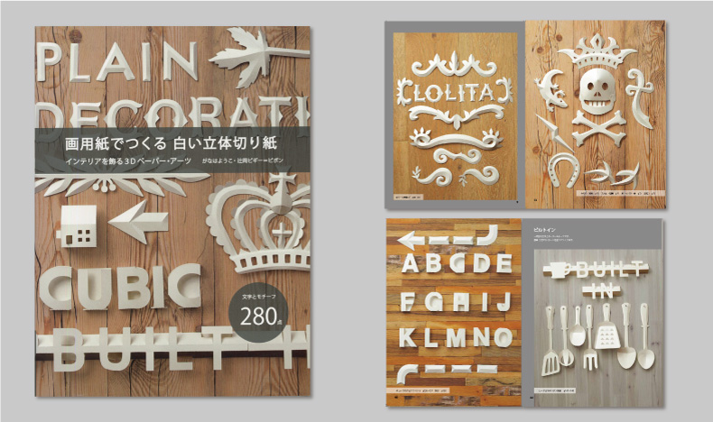 ゴシックなヨーロピアン調の風合いが出せることから、可愛いだけの切り紙作品ではない、ユニセックスでシャープな作品を数多く掲載。白い壁面に飾ると日光の向きや照明を浴びて変化する立体の陰影が楽しめます。